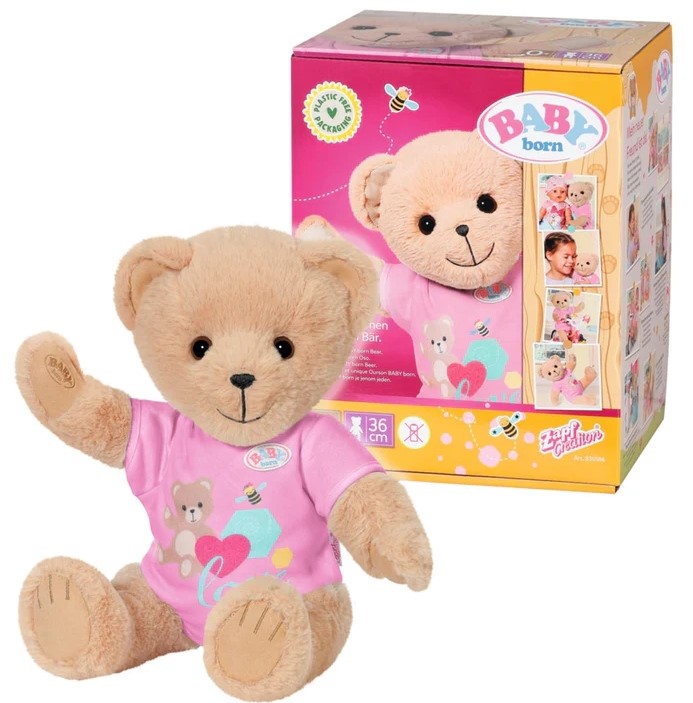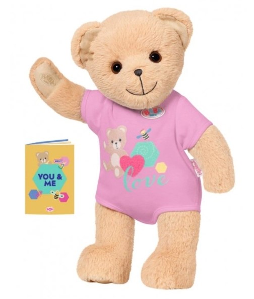 Malý medvídek se sladkým úsměvem má měkké tělíčko. Je oblečen do slušivého růžového oblečku. Má svou vlastní módní kolekci a medvědí doplňky, ale může nosit i téměř cokoliv, co nosí panenka BABY born a také může používat její doplňky. Medvídek je navržen tak, aby mu sedělo téměř všechno oblečení pro BABY born velikosti 43 cm.
